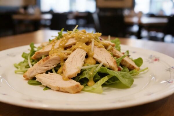 Sabrosa ensaladilla de pollo elaborada con pechuga de pollo cocida y troceada, mezclada con patata y hortalizas seleccionadas, todo ligado con una cremosa salsa de mayonesa y mostaza suave que aporta un toque aromático y ligeramente especiado. Una receta equilibrada, fresca y de sabor casero, ideal para ofrecer una opción ligera y versátil en carta.